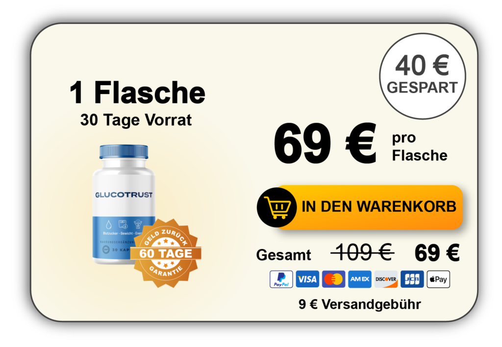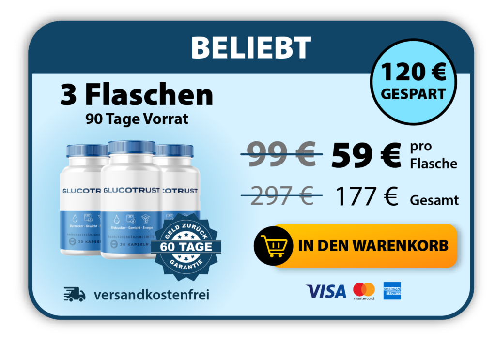 Wenn Sie sichergehen möchten, dass Sie ein Originalprodukt erhalten, nutzen Sie bitte ausschließlich den offiziellen Bestelllink: GlucoTrust offizielle Bestellseite. Nur so sind Boni, Garantie und sicherer Versand garantiert.